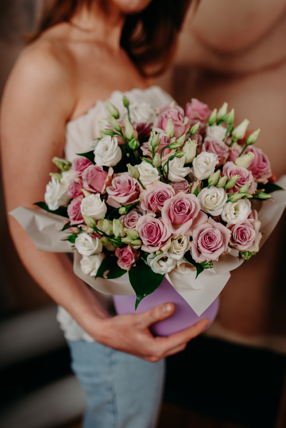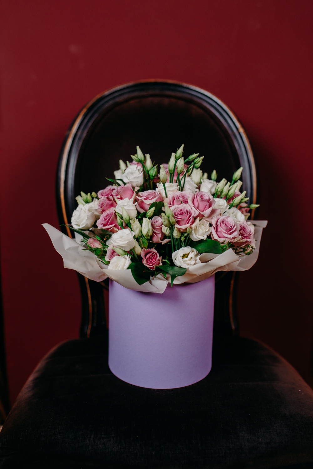 Букет можно заказать с доставкой до двери или самовывозом из магазина. Доставка цветов по Москве бесплатно в пределах МКАД.