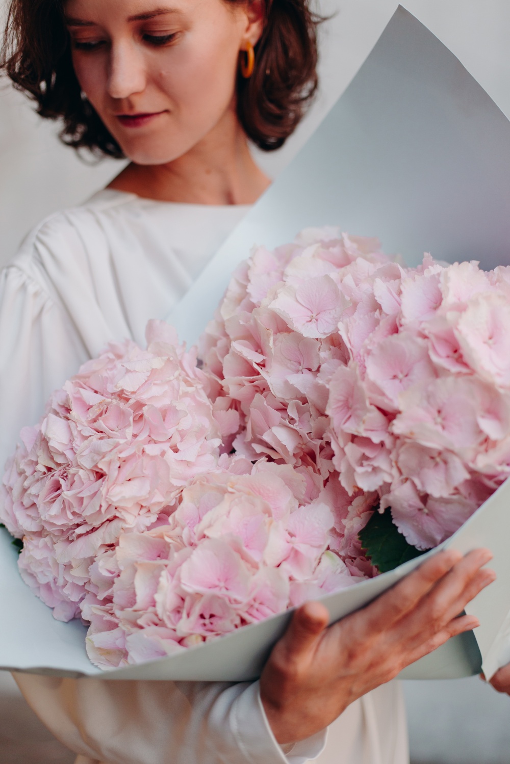Букет из пышных шапок гортензии цвета клубничного мороженого в упаковке из плотного картона, дополненный кружевной лентой. В комплект входит: инструкция по уходу, открытка с вашими пожеланиями. Букет можно заказать с доставкой до двери или самовывозом из магазина. Доставка цветов по Москве бесплатно"