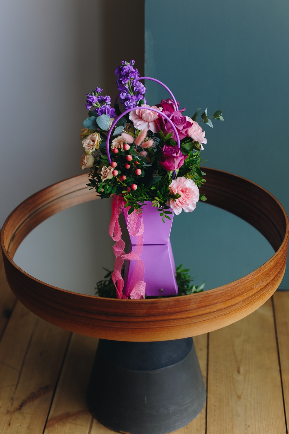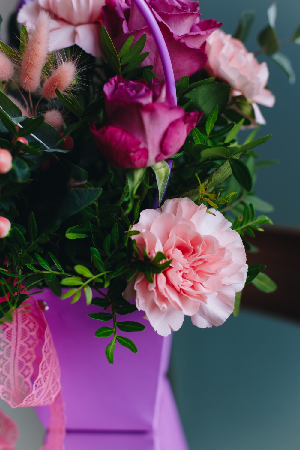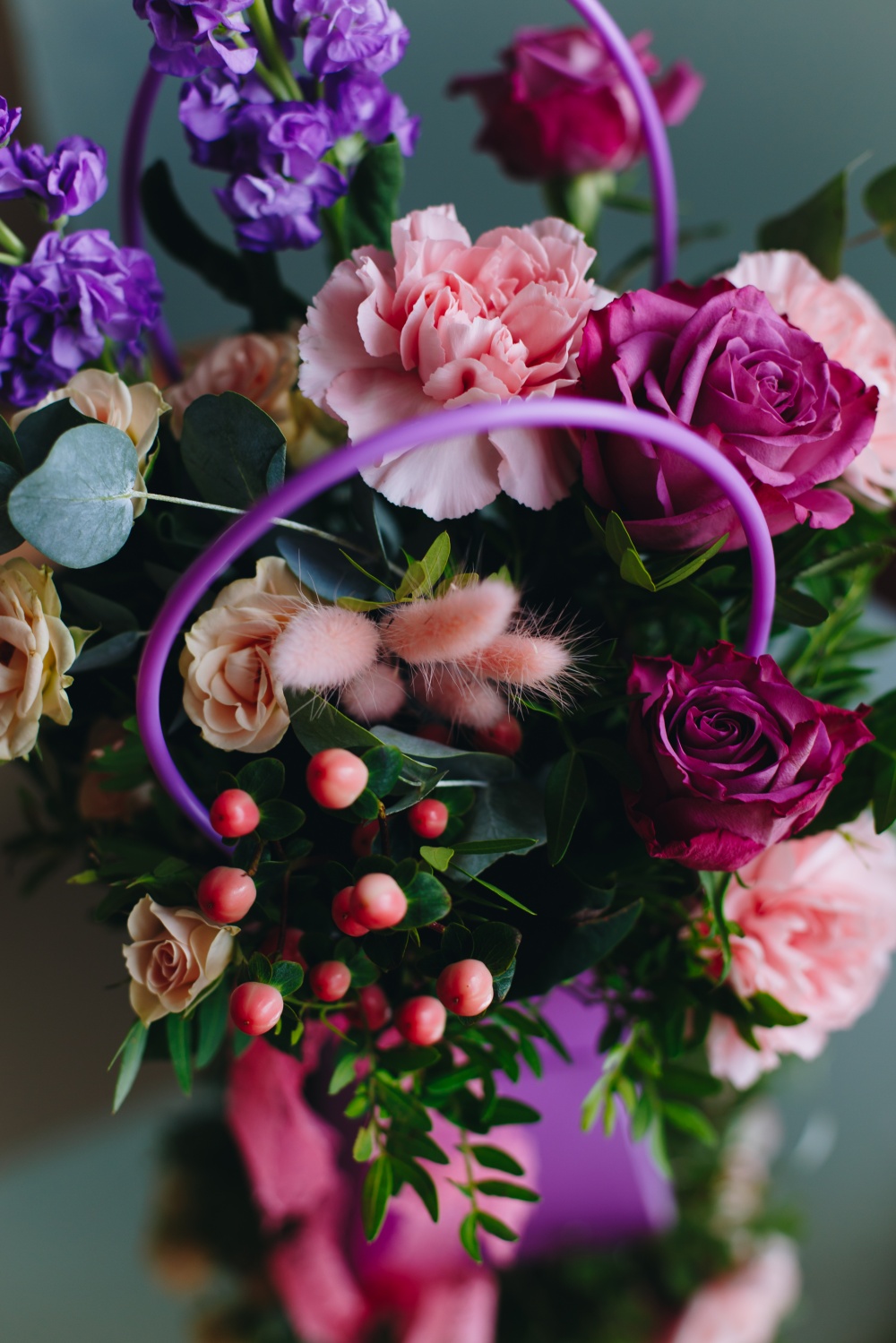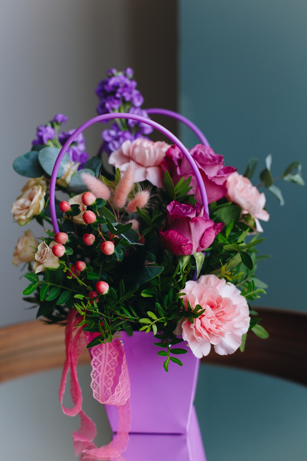 Роскошная композиция из ароматных роз и маттиолы, кремовых диантусов и лагурусов, веток гиперикума и сочной зелени станет прекрасным подарком по любому поводу и без.